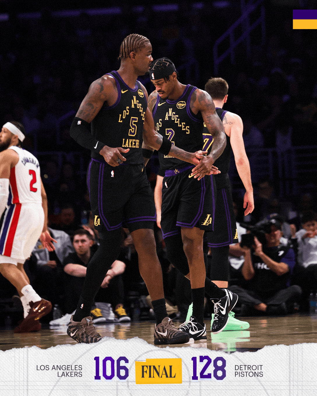 虎撲12月31日訊 今日NBA常規賽,湖人106-128不敵活塞。媒曬